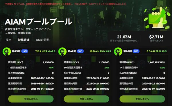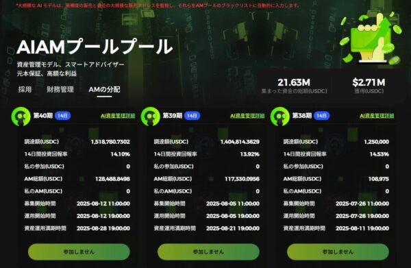 AMは定期的に募集が行われ、ユーザーはスマートコントラクト経由でUSDCを預け入れます。