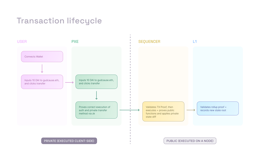 1. ローカル実行: ユーザーがプライベートなトランザクションを行う際、処理はすべてクライアント(ユーザーの手元)のPXE上で実行されます。